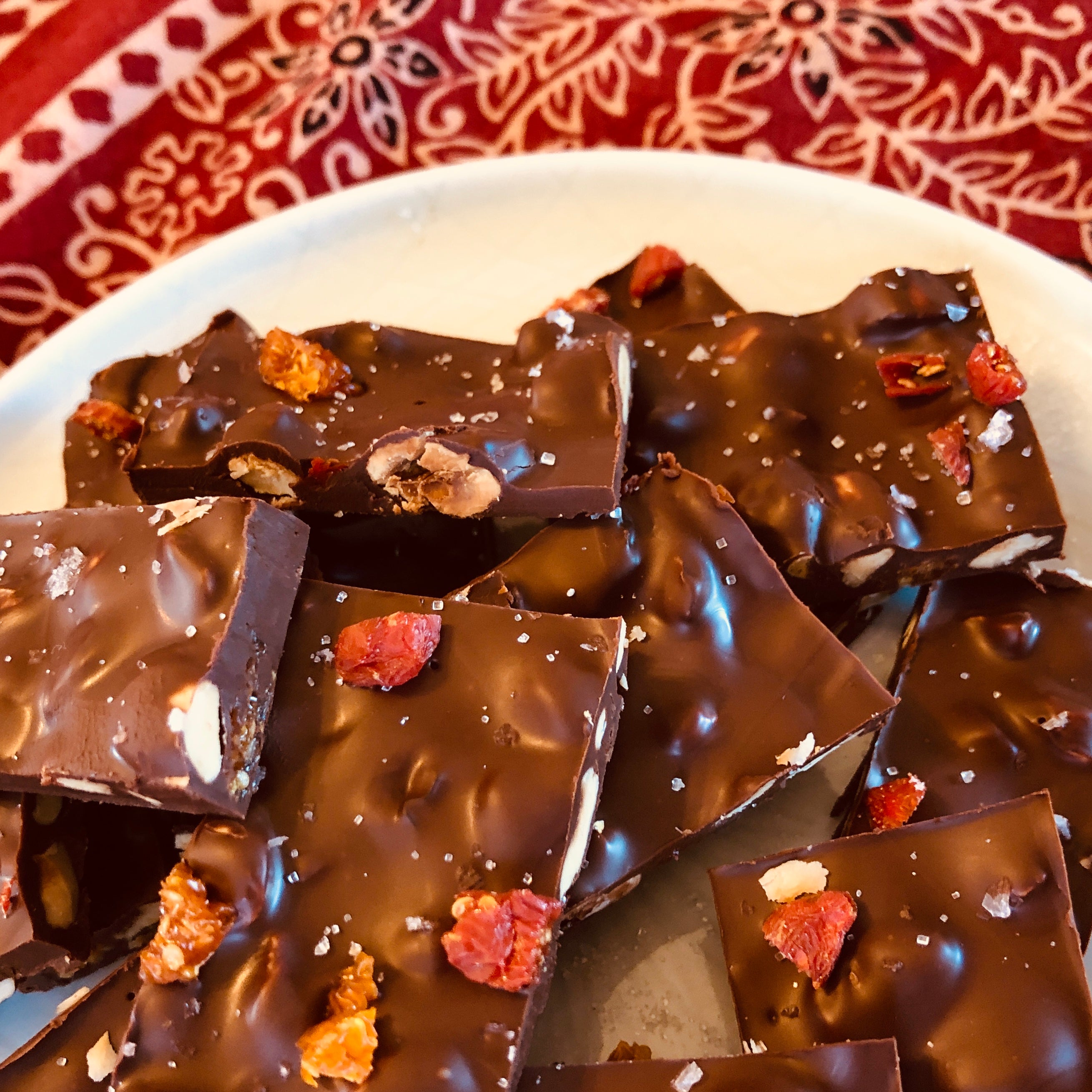1/8 cup chopped golden berries, you can sub raisins of any other dried fruit, or eliminate this altogether if you just want some chocolate goodness.