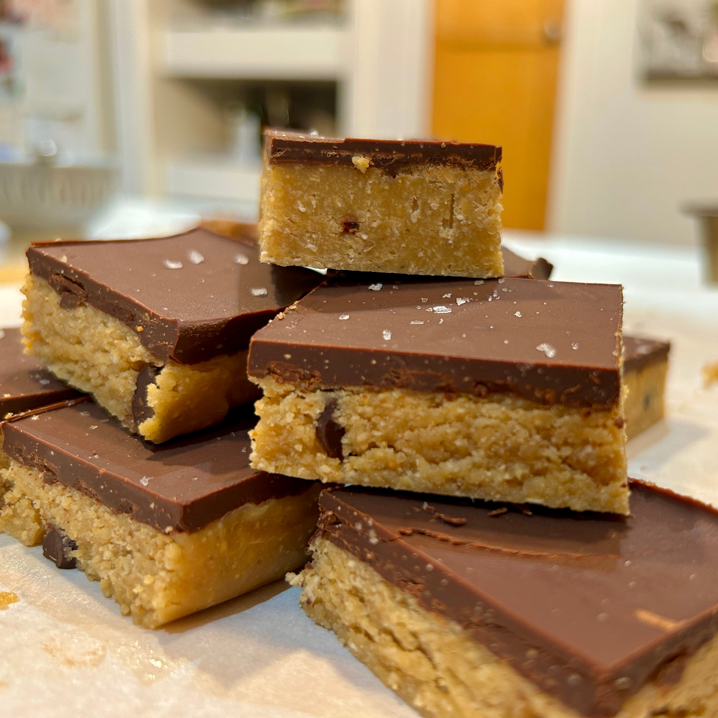 - Mix the oat, almond flour and salt in a bowl, then add in the peanut butter, coconut oil, maple syrup and vanilla. Mix to combine then fold in the chocolate chips.
