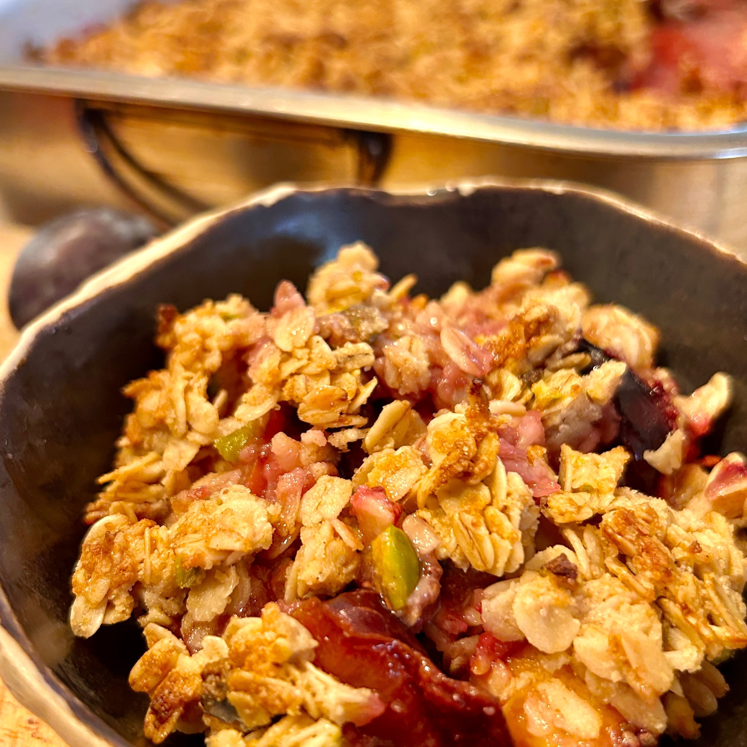 When life gives you plums, about 10 kgs of them, while you still have 5 kgs of peaches as well as pears, you start baking. Normally I would freeze them,...